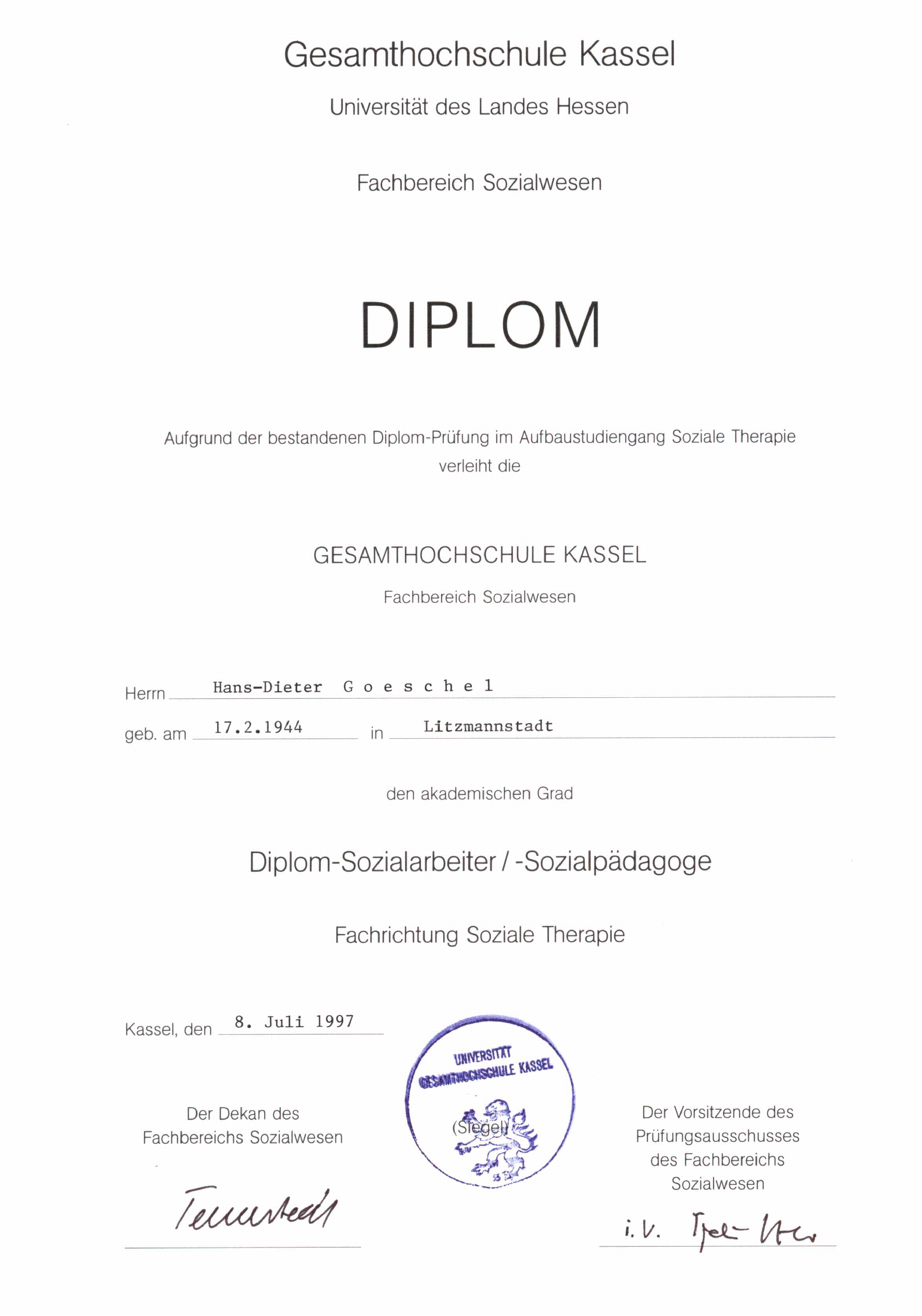 Dieter Goeschel Diplom-Sozialtherapeut Psychodrama-Leiter Supervisor (DGSv)